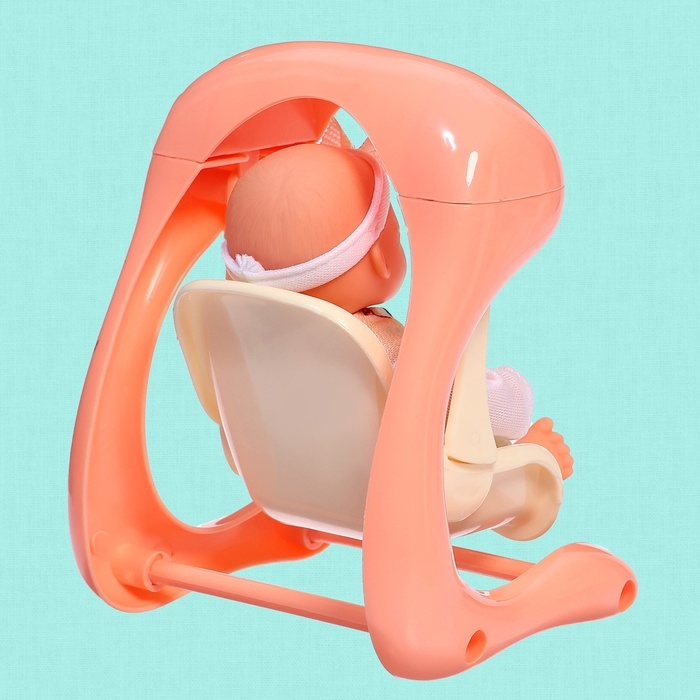 - Пупс оснащён небольшими качелями, на которых его можно качать. Это не только забавная игрушка, но и способ развить мелкую моторику ребёнка.