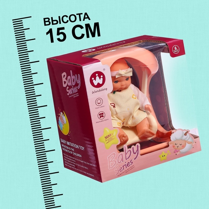 - Пупс имеет размер 15 см, что делает его удобным для маленьких детских ручек.
