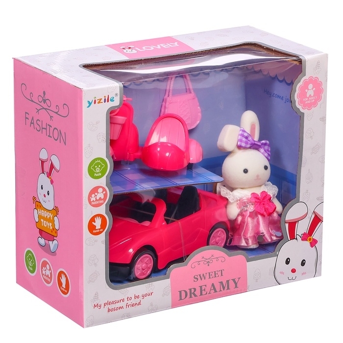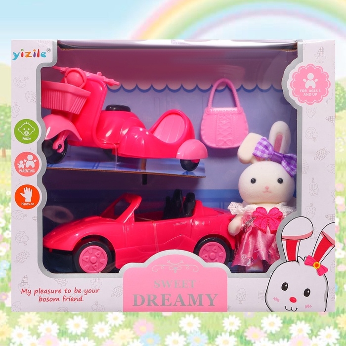 Игровой набор «Зверята. Автолюбитель» — мир приключений для вашего ребёнка! В набор входит стильная машинка, модный мотоцикл с коляской, очаровательная зайка и милая сумочка.