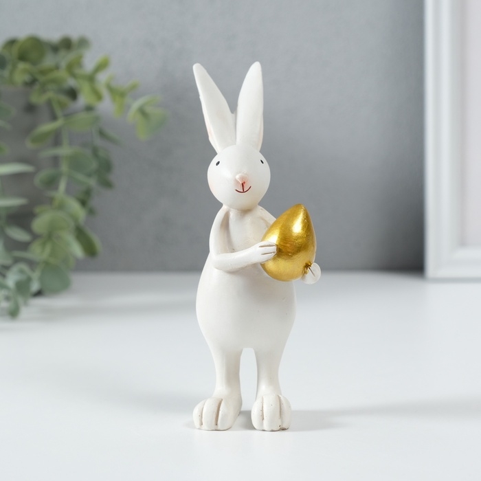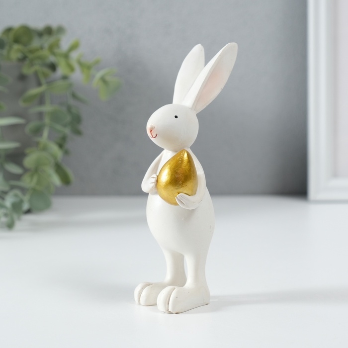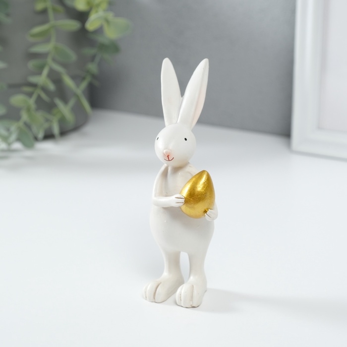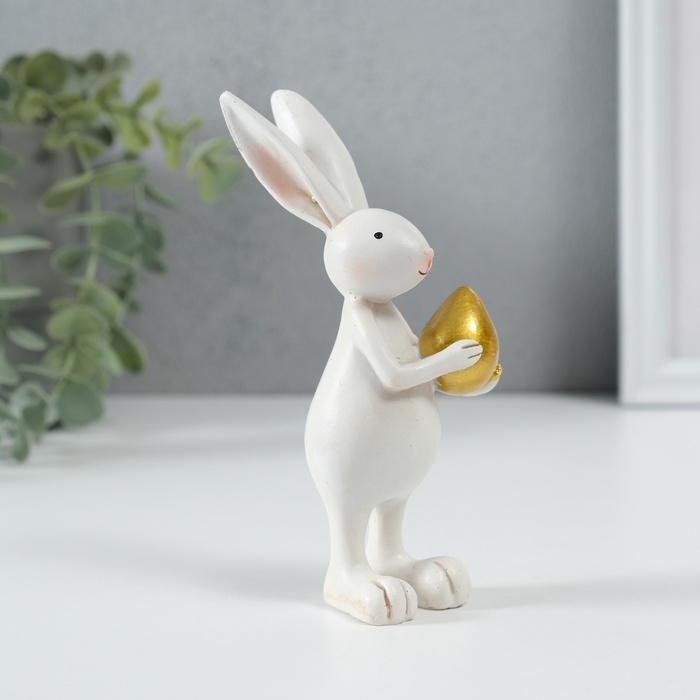 Сувенир полистоун "Кролик пасхальный с золотым яйцом" 4х4х13 см