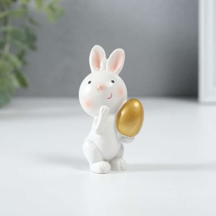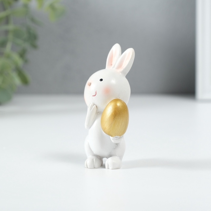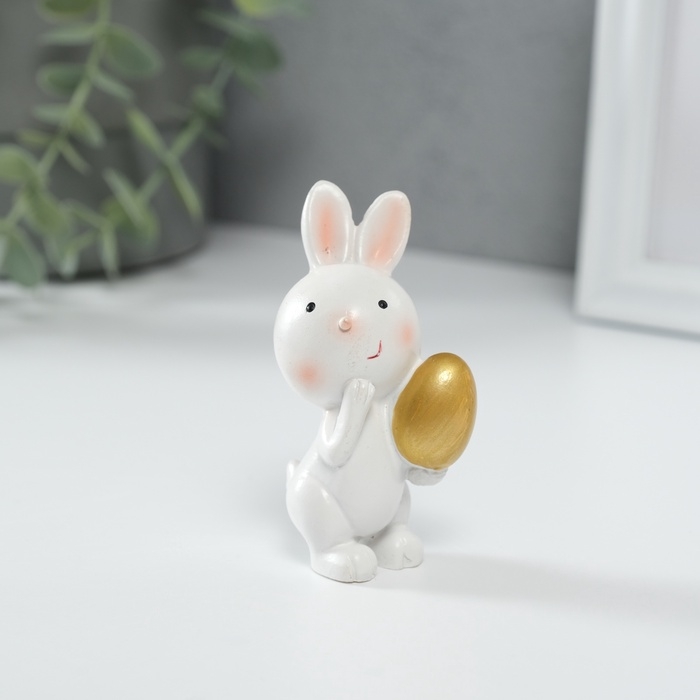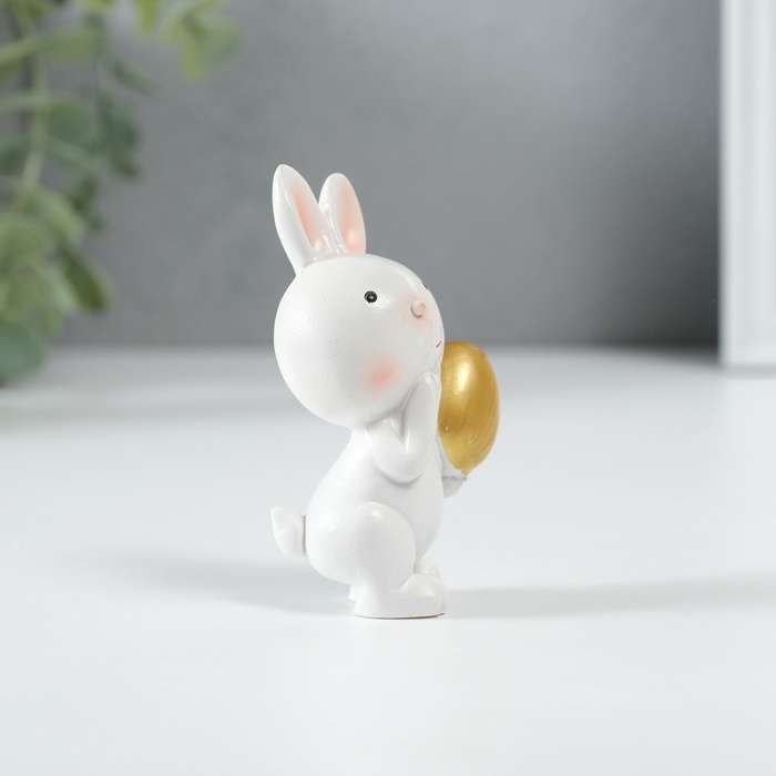 Сувенир полистоун "Пасхальный кролик маленький белый с золотым яичком" 4,5х3х8 см