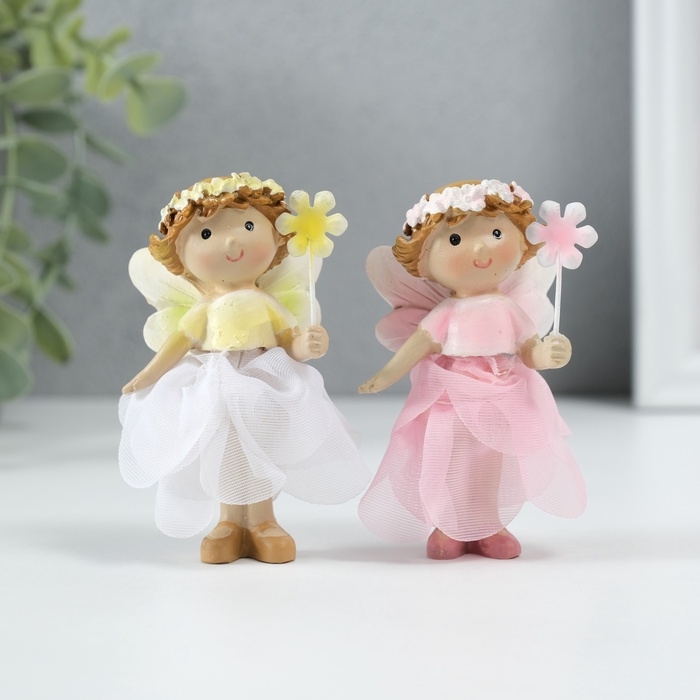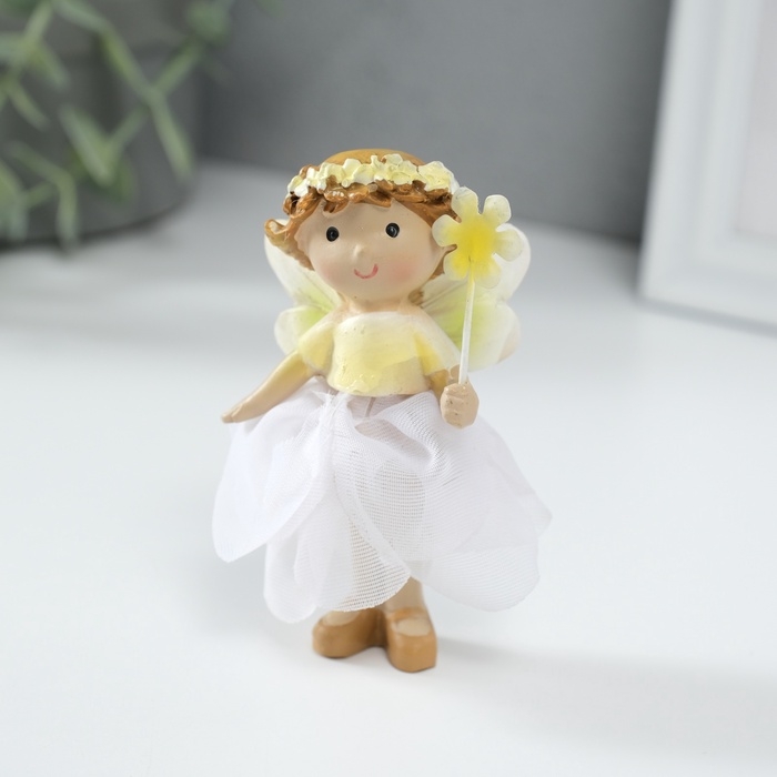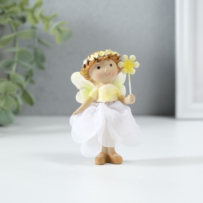 Сувенир полистоун "Малышка фея в цветочном платьишке с цветком" МИКС 6х6х6 см