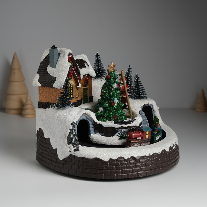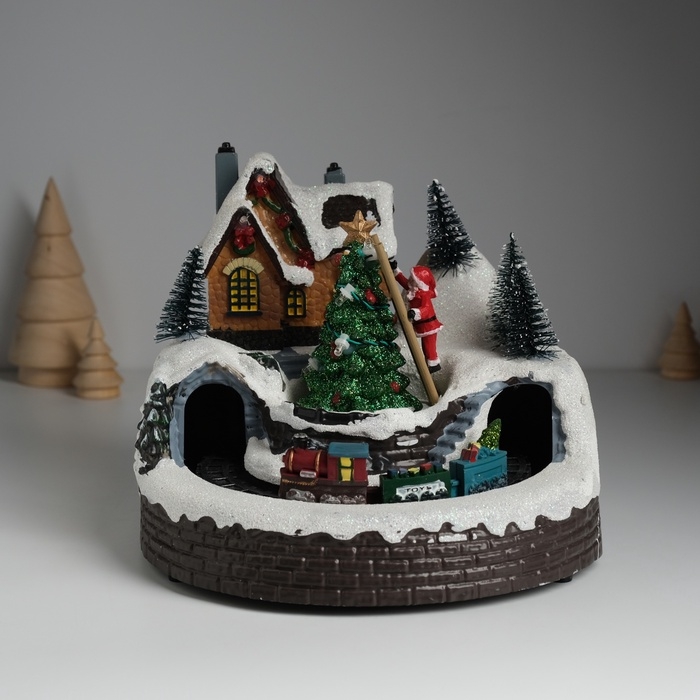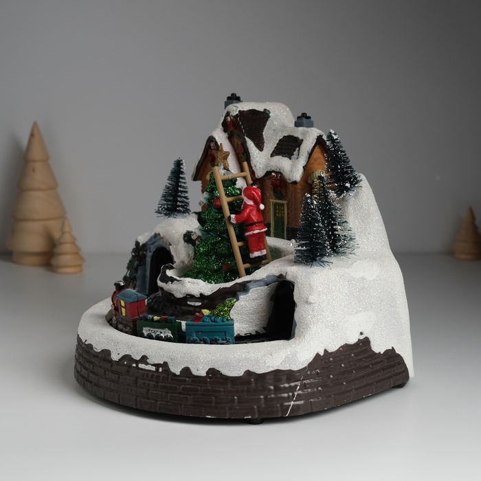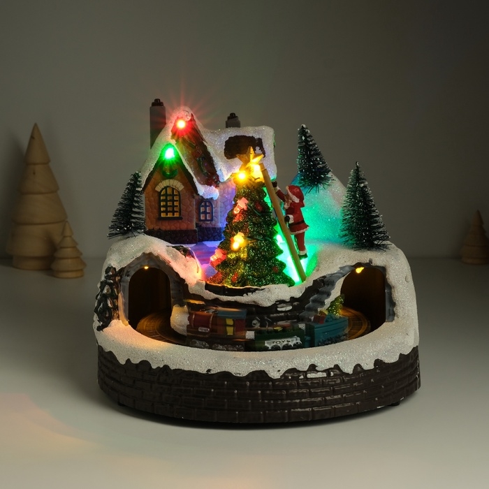 Сувенир пластик световой "Дед Мороз наряжает ёлочку" крутится 19,5х19,5х16 см