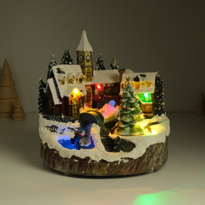 Сувенир пластик световой "Новогодняя улочка" крутится 20,5х17х20,5 см