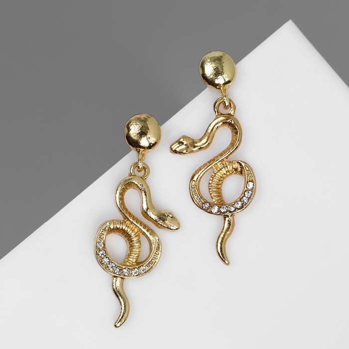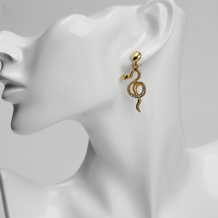 Серьги висячие со стразами "Змея" мелодия, цвет белый в золоте