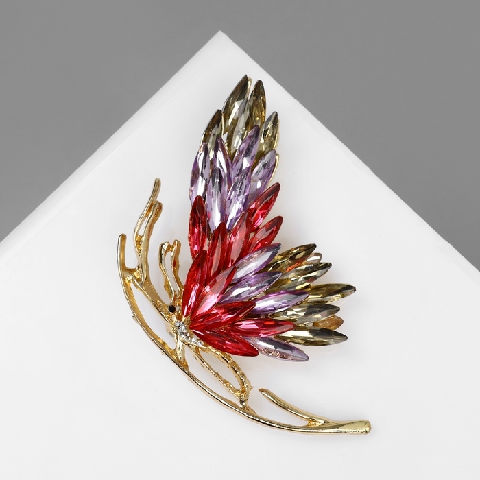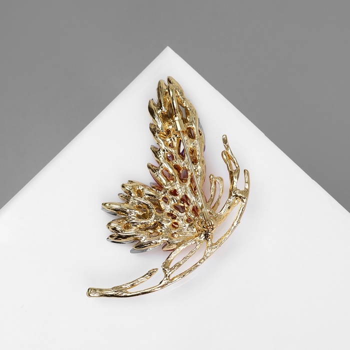 Брошь "Бабочка" с большими крыльями, цвет розовый в золоте