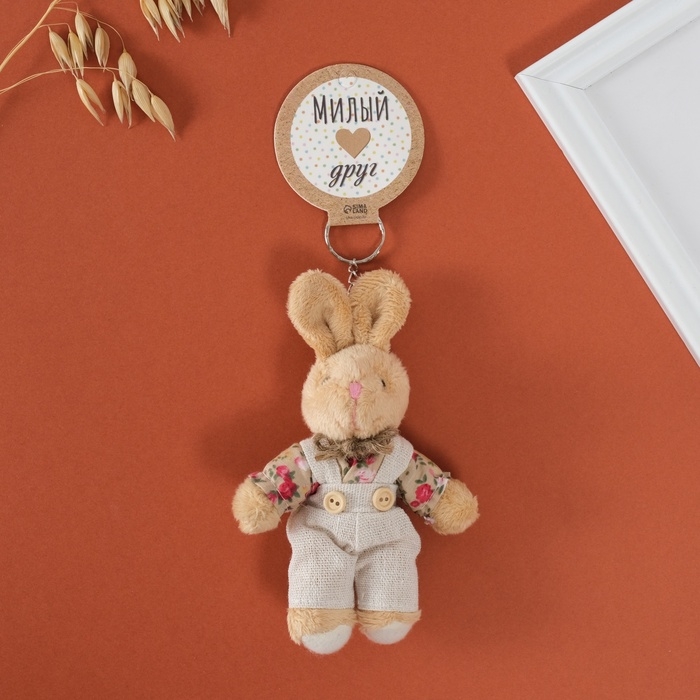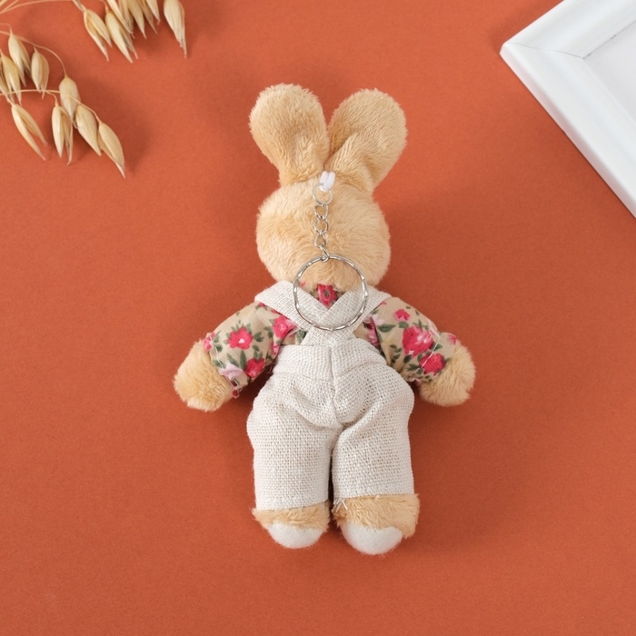 Брелок текстиль "Зайка в цветочном комбезе" 8,5х4х14 см
