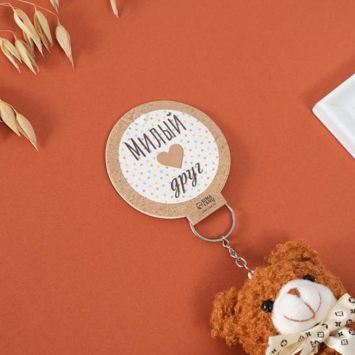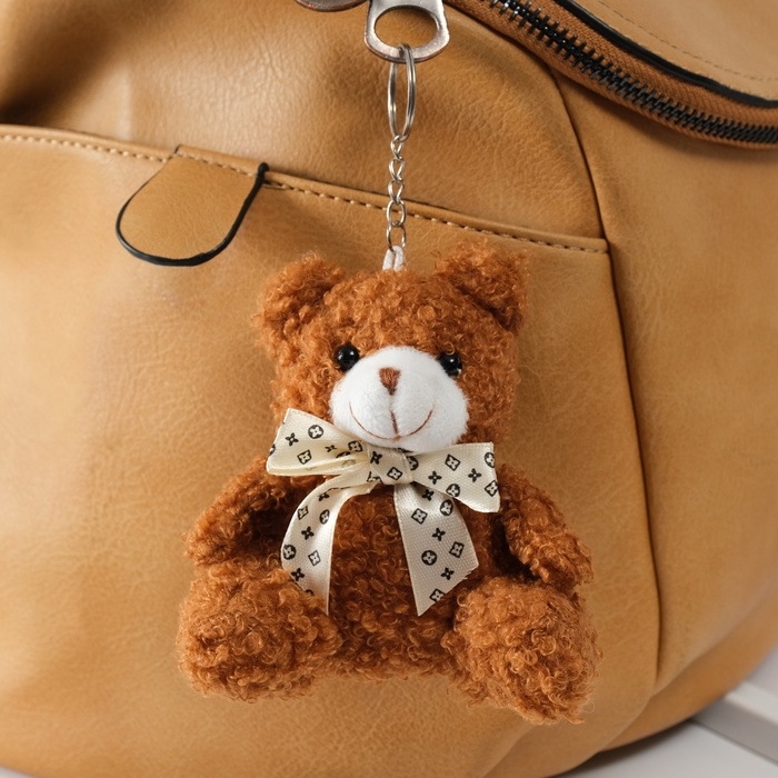 Брелок текстиль "Мишка коричневый с бантиком" 9х6х9,5 см