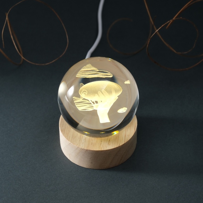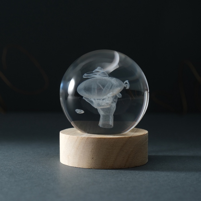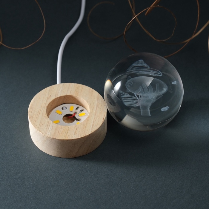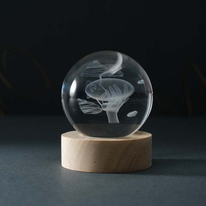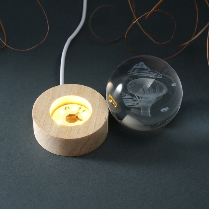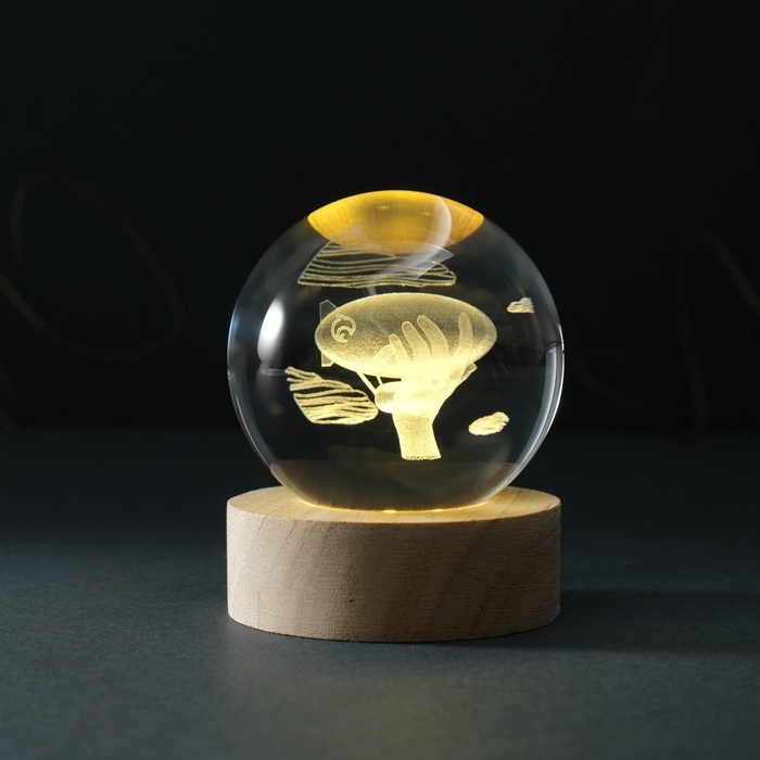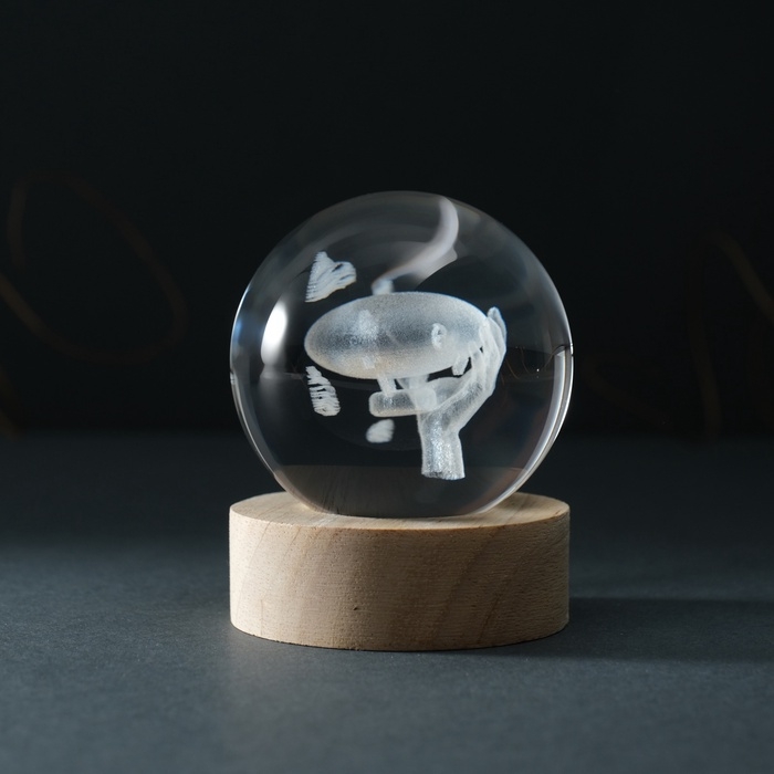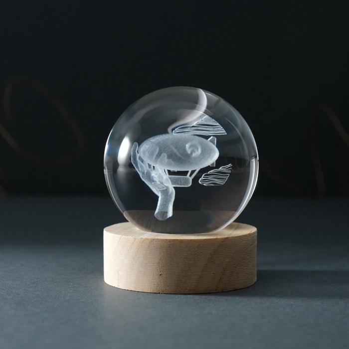 Сувенир стекло подсветка "Шар. Дирижабль" d=6 см подставка дерево, USB