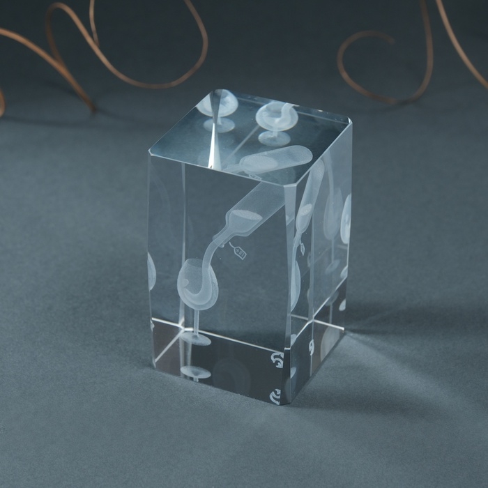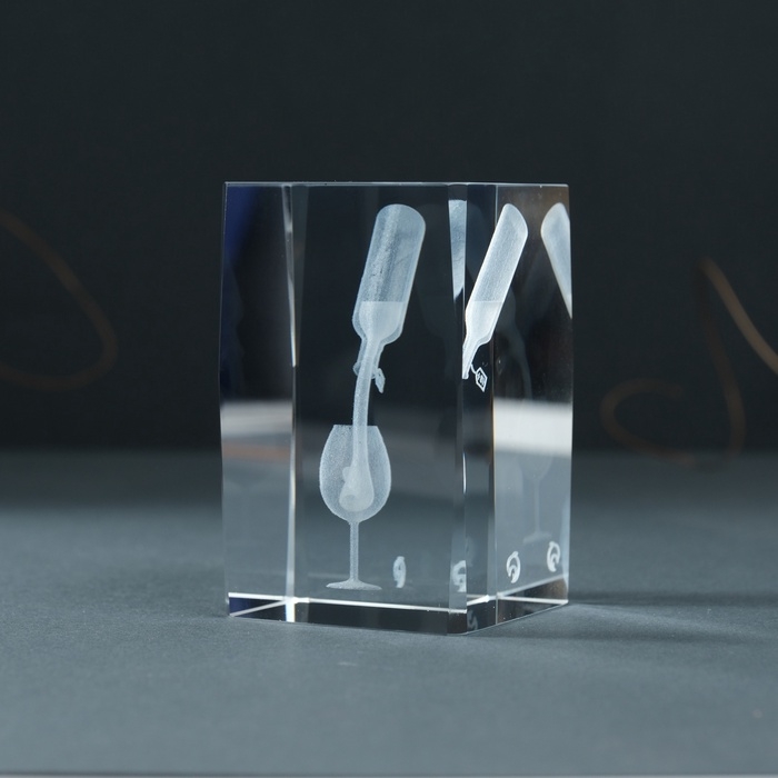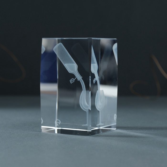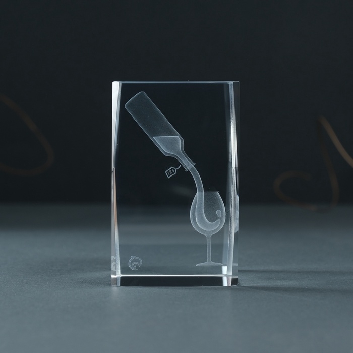 Сувенир стекло прямоугольник "Бокал и вино" 5х5х8 см