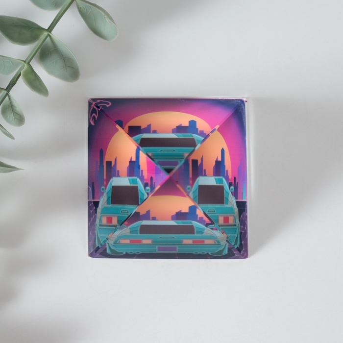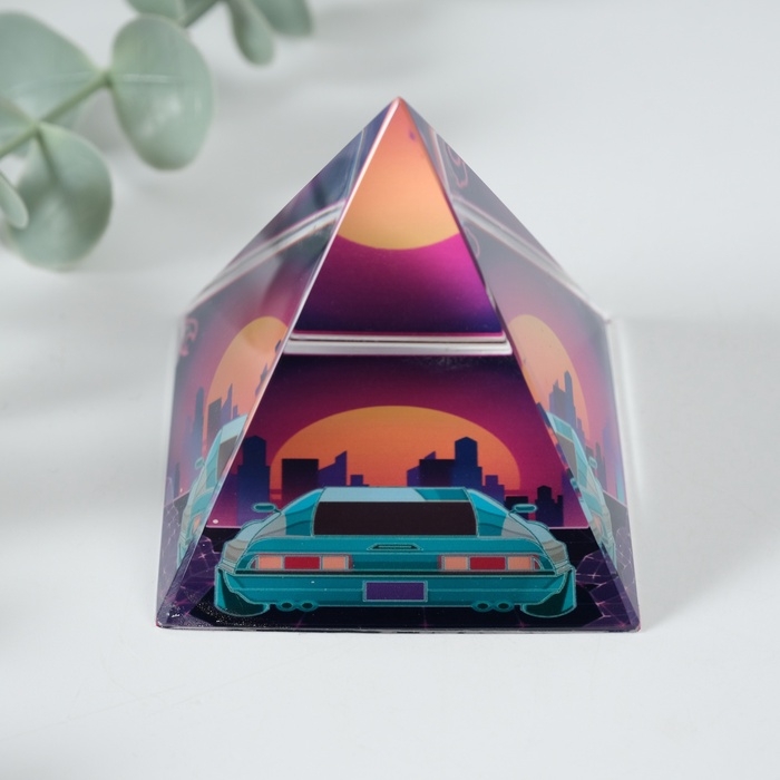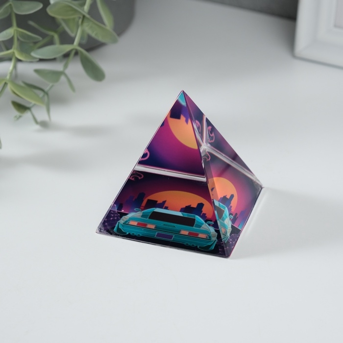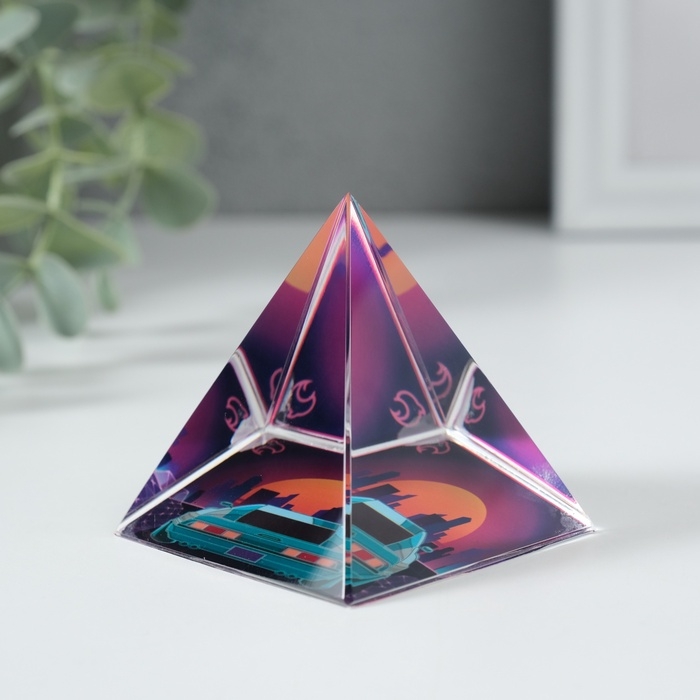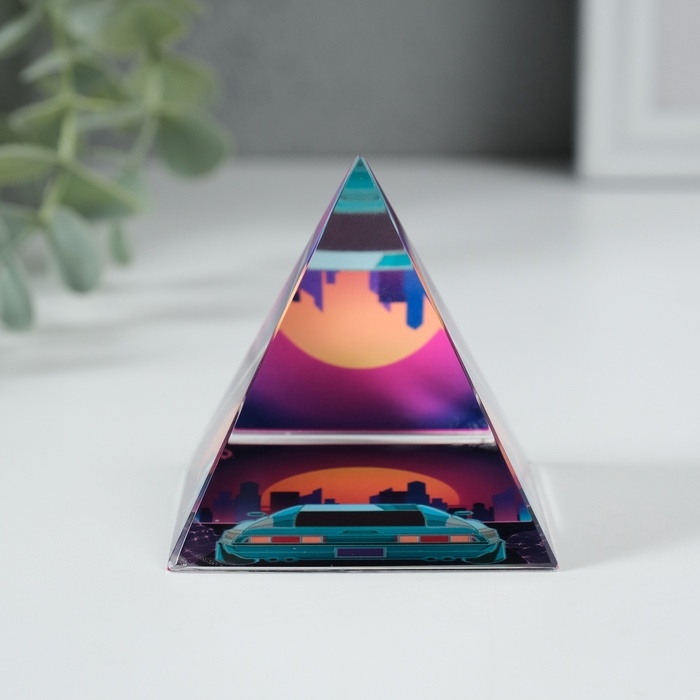 Сувенир стекло пирамида "Вид на город" 6х6х6 см