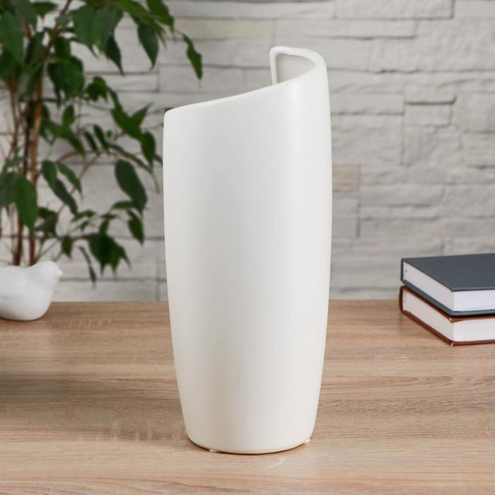 Ваза керамика настольная "Полуликий" 11х28 см, белый