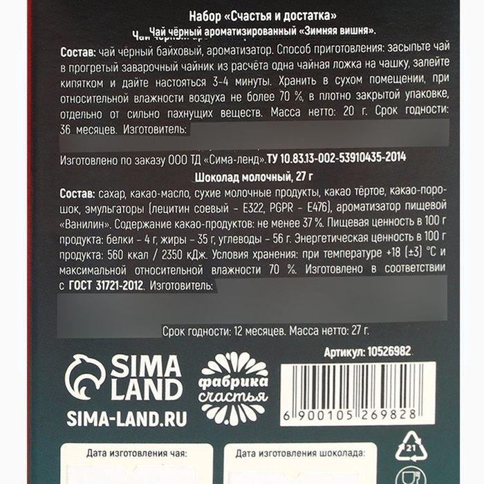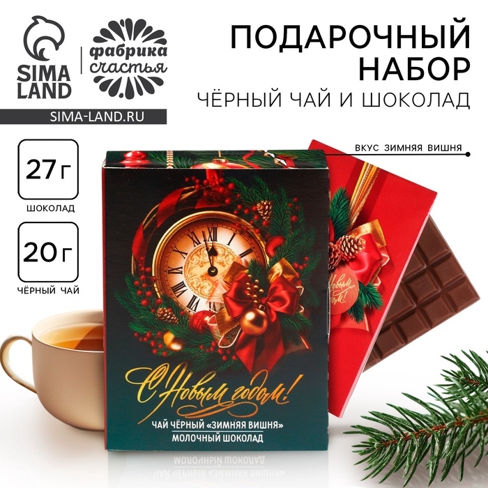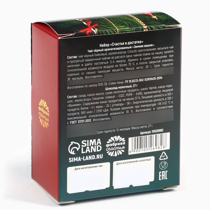 Подарочный набор новогодний «Счастья и достатка», чай, шоколад