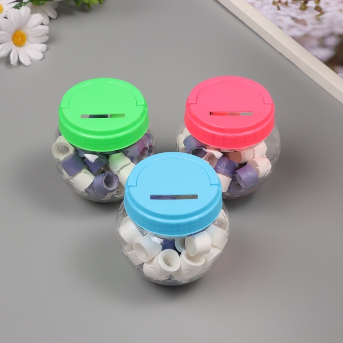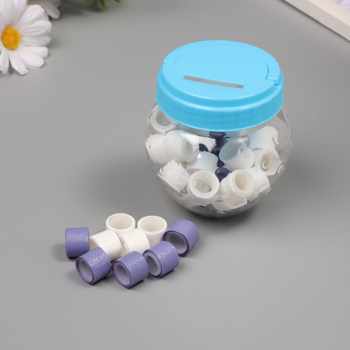 Клейкая лента пластик в банке "Белый и фиолетовый" н-р 40 шт 1,2 см, дл. 0,9 м 7х7х9 см