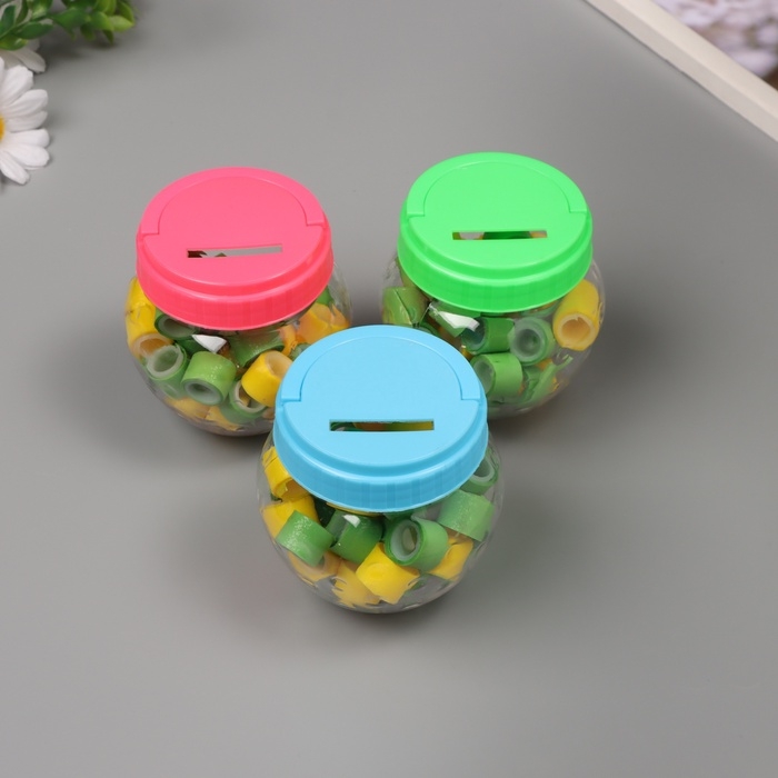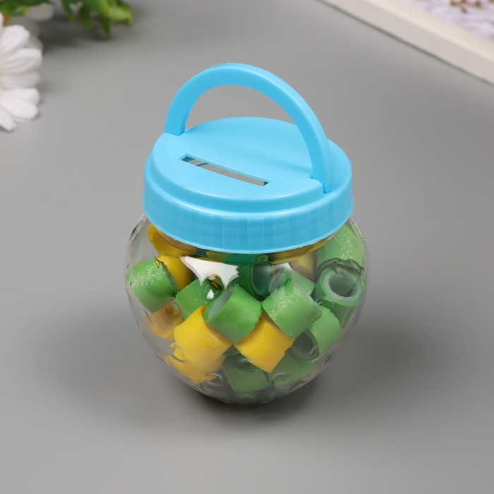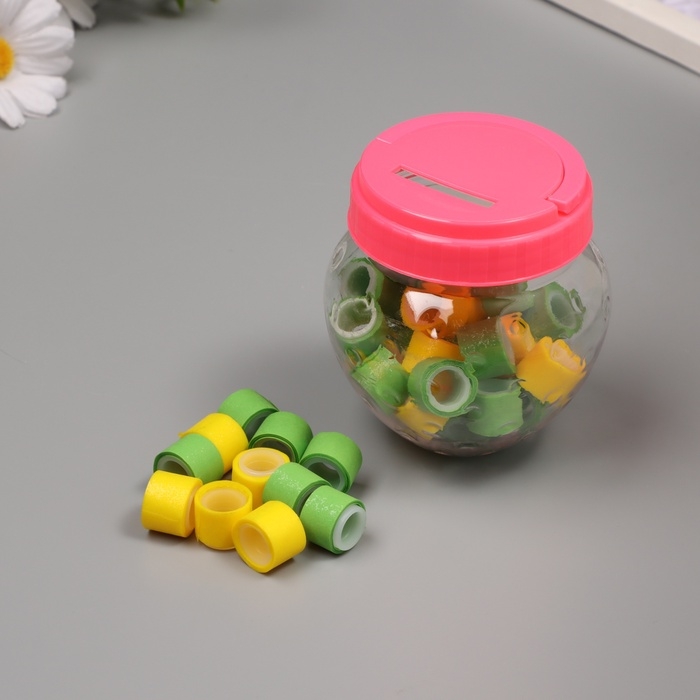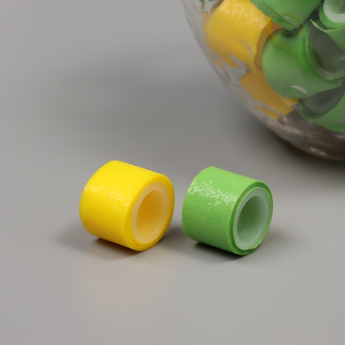Клейкая лента пластик в банке "Зелёный и жёлтый" н-р 40 шт 1,2 см, дл. 0,9 м 7х7х9см