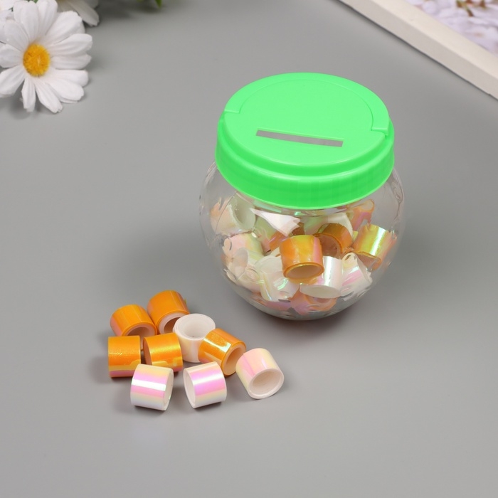 Клейкая лента пластик в банке "Перл. Белый и оранж" н-р 40 шт 1,2 см, дл.0,9 м 7х7х9 см