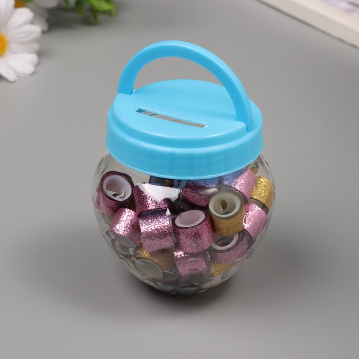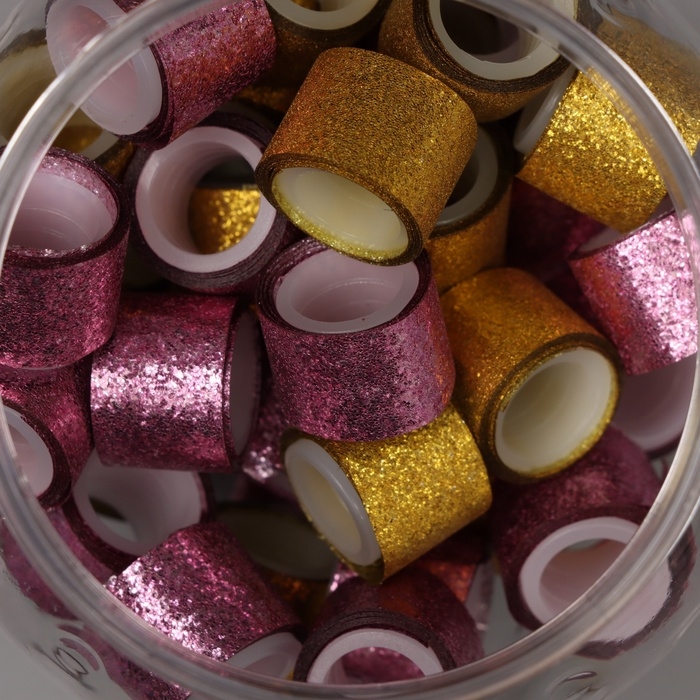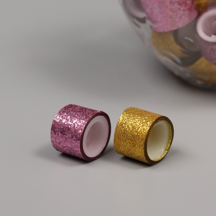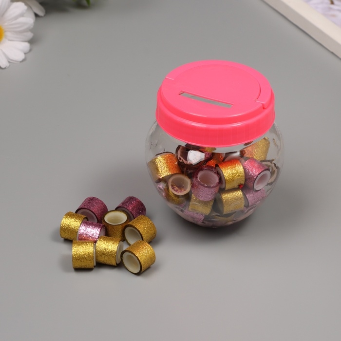 Клейкая лента пластик в банке "Шайн. Золото и розовый" н-р 40 шт 1,2 см, дл.0,9 м 7х7х9 см