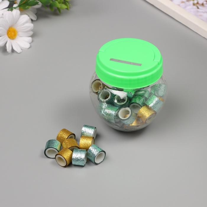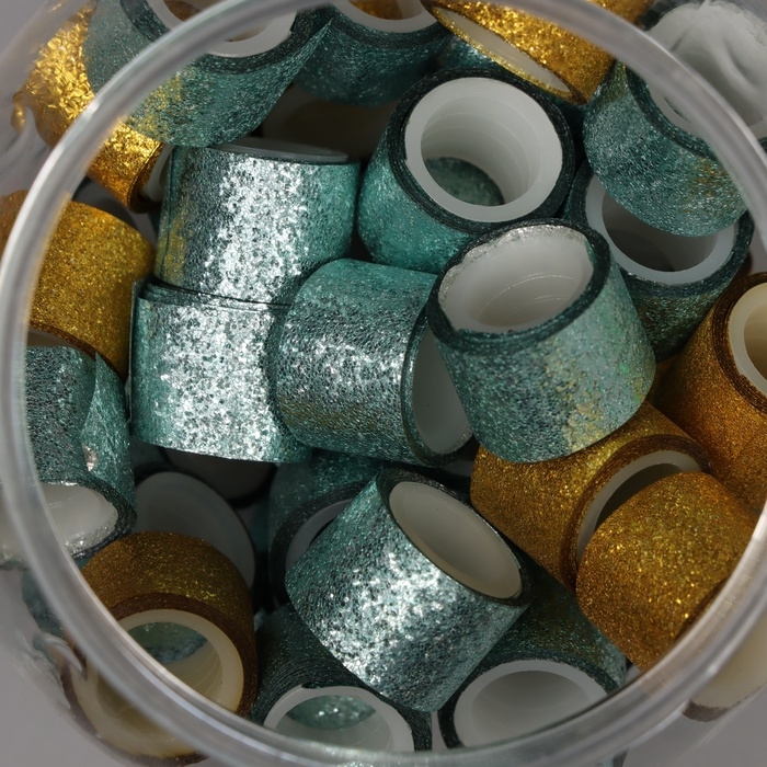 Клейкая лента пластик в банке "Шайн. Золото и голубой" н-р 40 шт 1,2 см, дл.0,9 м 7х7х9 см
