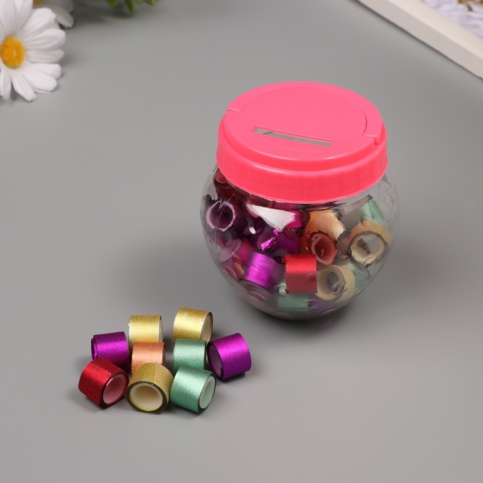 Клейкая лента пластик в банке "Глори. Микс" н-р 40 шт 1,2 см, дл.0,9 м 7х7х9 см