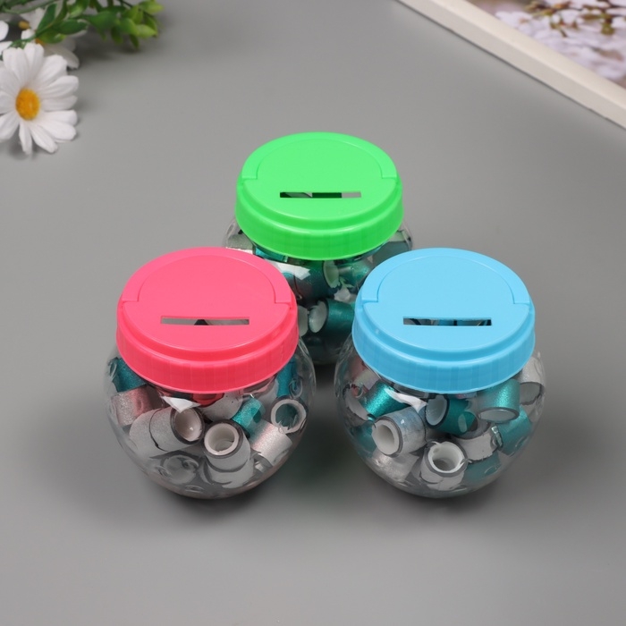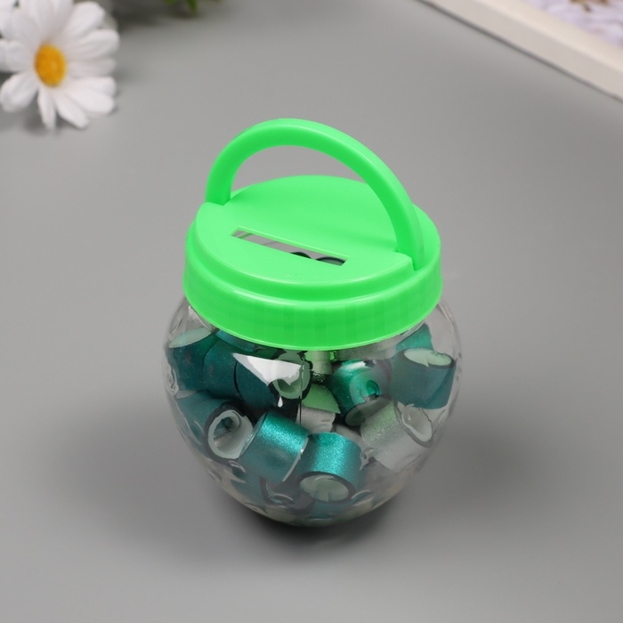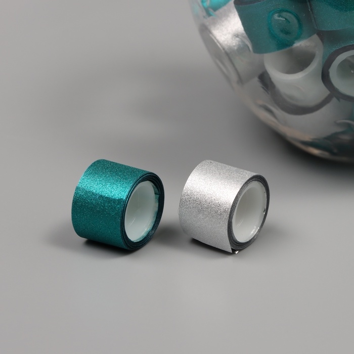 Клейкая лента пластик в банке "Глори. Серебро, голубой" н-р 40 шт 1,2 см, дл.0,9м 7х7х9 см