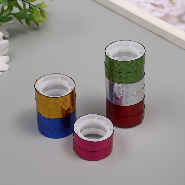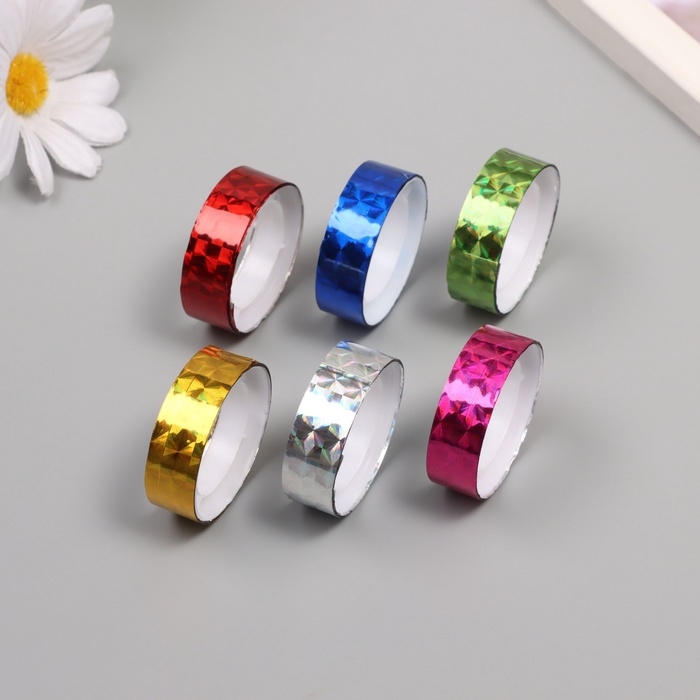 Клейкая лента декоративная "Голографический рисунок" н-р 12 шт 1,2 см, дл. 2 м