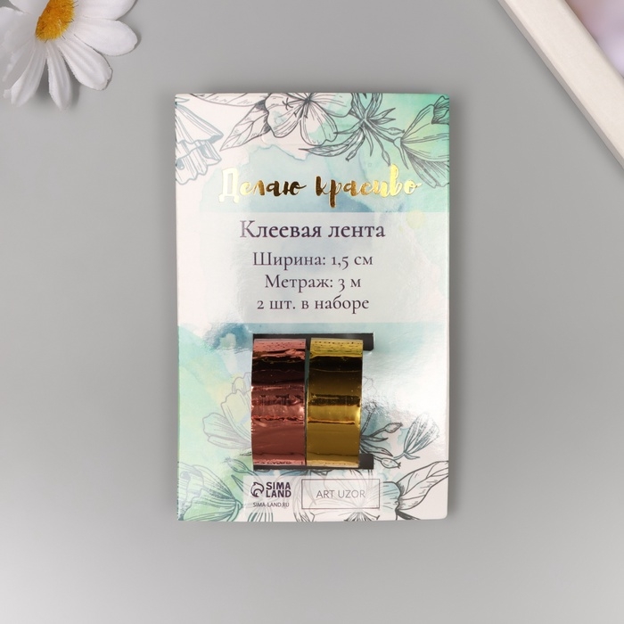 Клейкая лента декоративная пластик "Металлик. Золото, бронза" н-р 2 шт 1,5 см, дл. 3 м