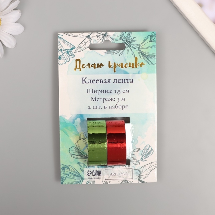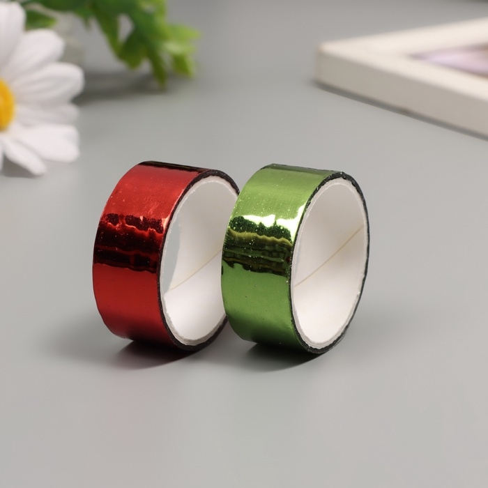 Клейкая лента декоративная пластик "Металлик. Красный, зелёный" н-р 2 шт 1,5 см, дл. 3 м