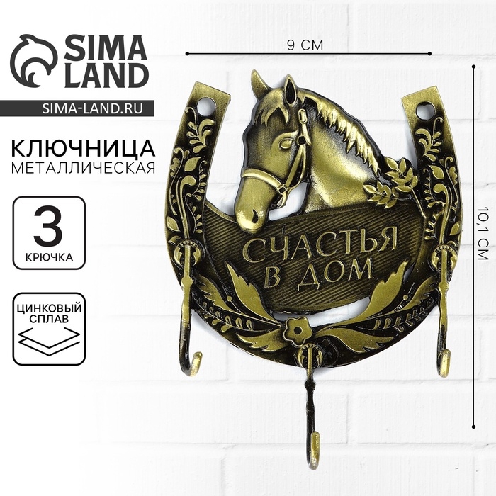 Ключница настенная «Счястья в дом», лошадь, 9 х 10.1 см