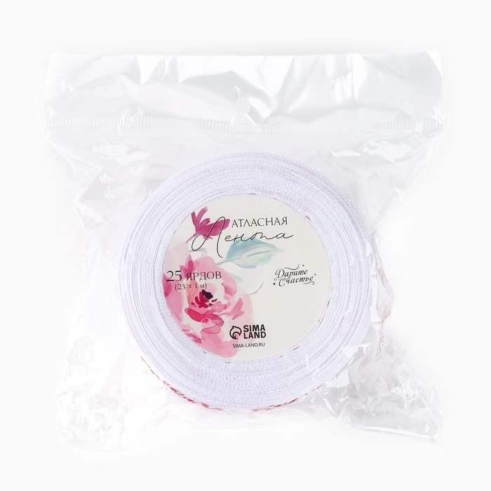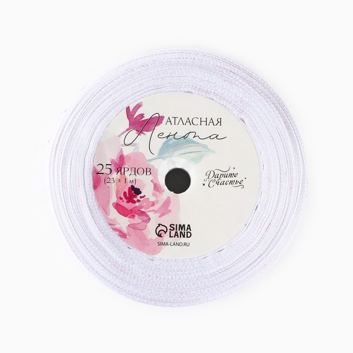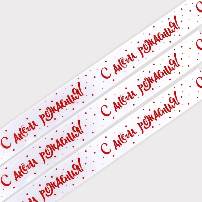 Лента атласная «С Днём рождения!»,белая, 4 см × 25 ярдов (22,5 м)