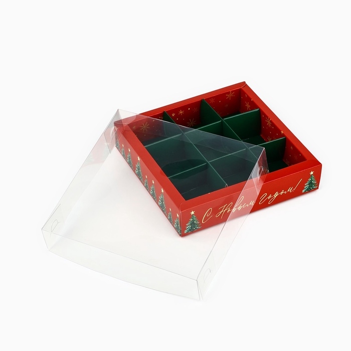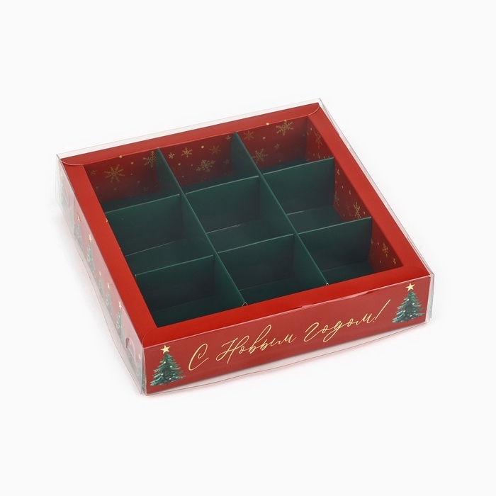Коробка под 9 конфет с ячейками «Ёлочки», 14.5 х 14.5 х 3 см