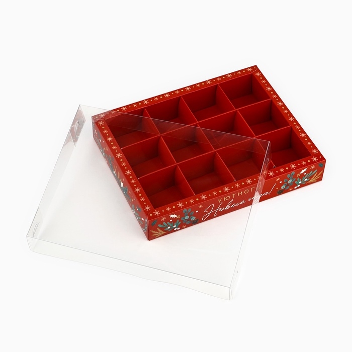 Коробка под 12 конфет с ячейками «Уютного Нового года», 14.5 х 18.5 х 3 см