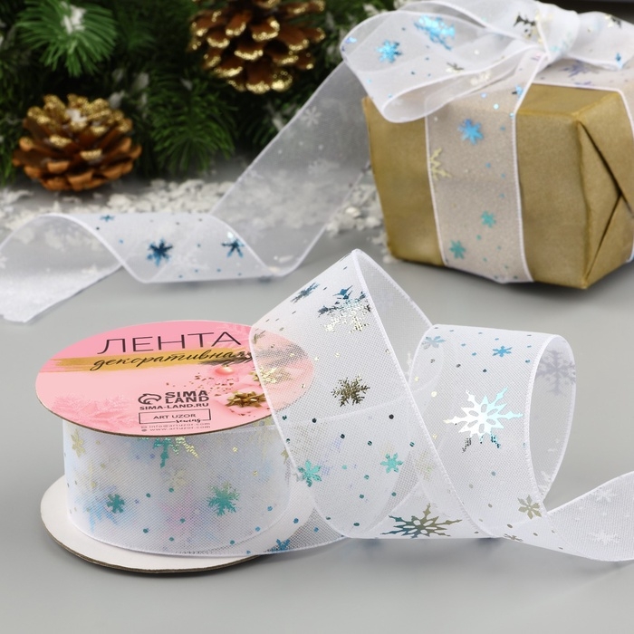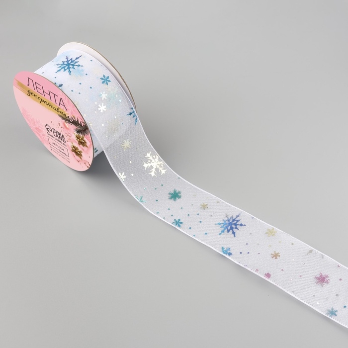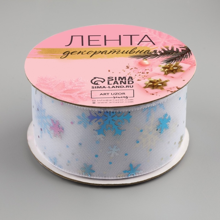 Лента капроновая «Снежинки», 40 мм, 9 ± 0,5 м, цвет белый