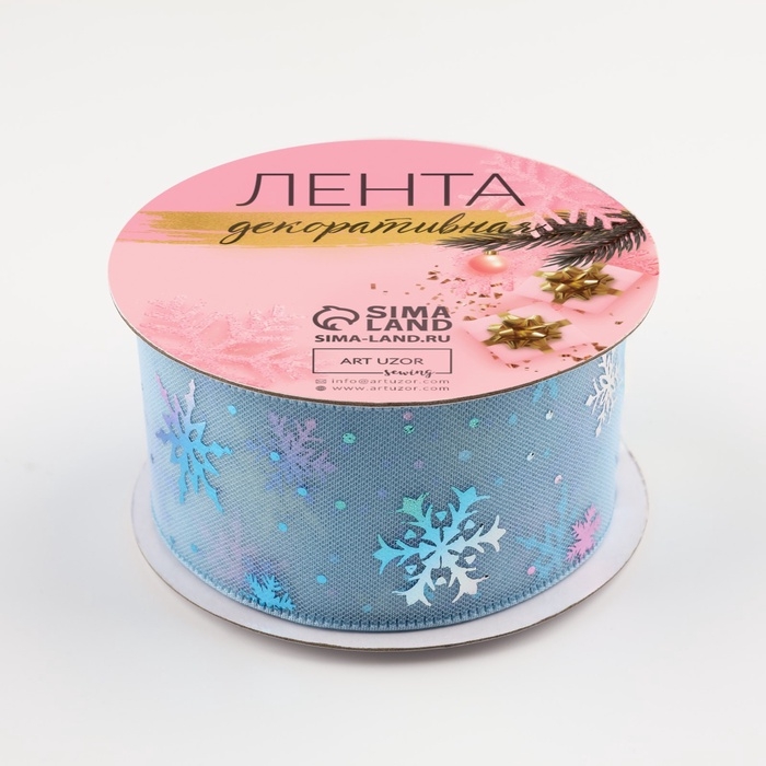 Лента капроновая «Снежинки», 40 мм, 9 ± 0,5 м, цвет голубой