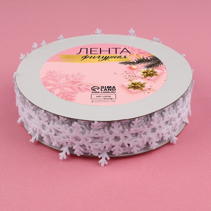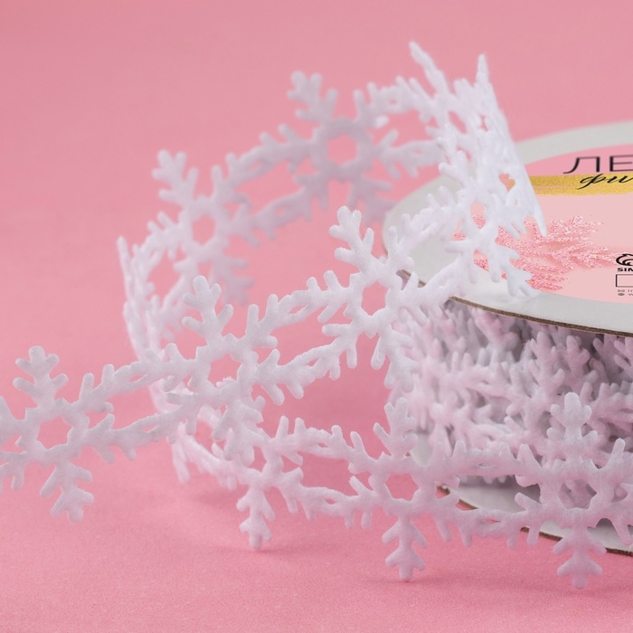 Лента декоративная фигурная «Снежинки», 25 мм, 9 ± 0,5 м, цвет белый