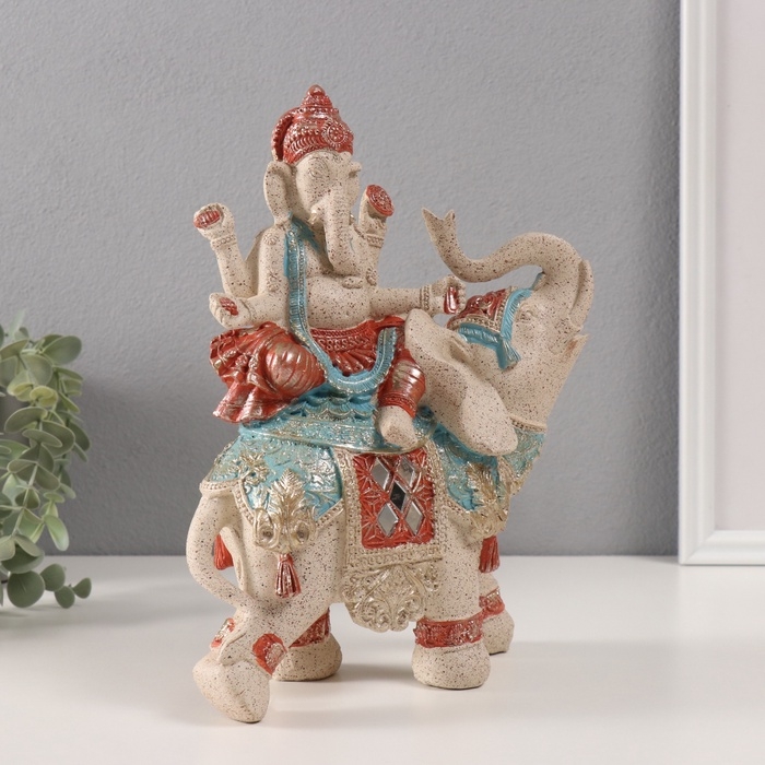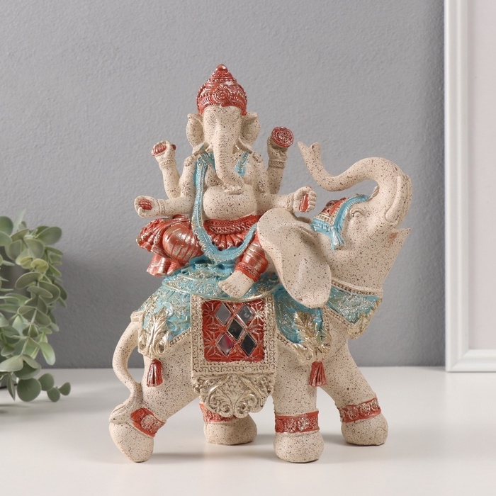 Сувенир полистоун "Ганеша на слоне" песочный 10х20х26 см