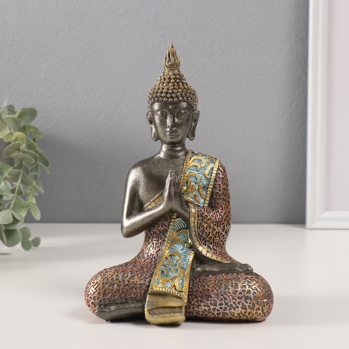 Сувенир полистоун "Будда - Мудра Намаскара" серый 9,5х13,5х19,5 см