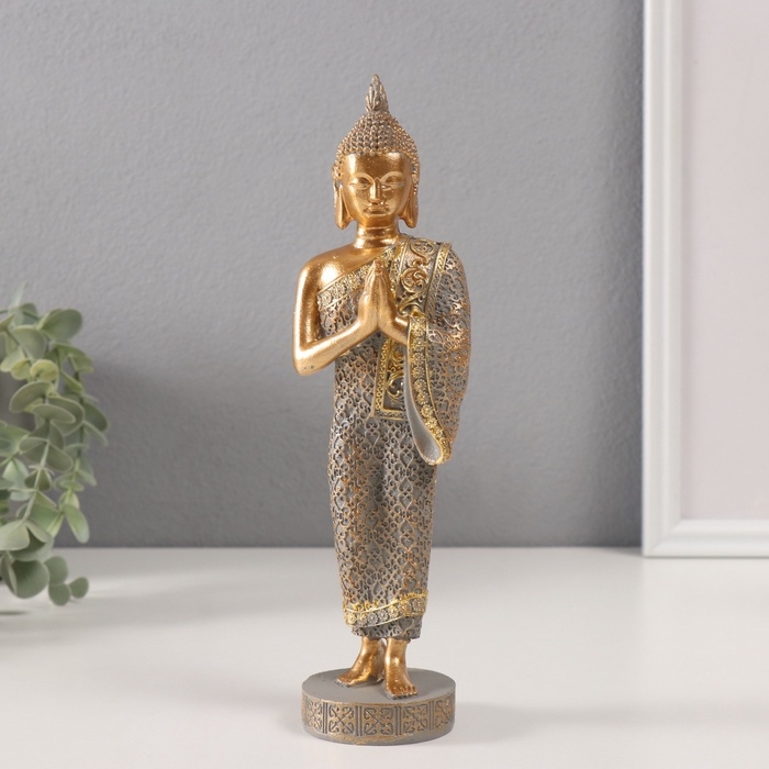 Сувенир полистоун "Будда - Анджали-мудра" золотой 6х7х23,5 см