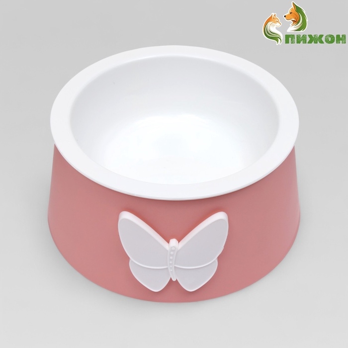 Миска универсальная для животных 2 в 1 "Бабочка", пластиковая, 14 х 8 см, розовая