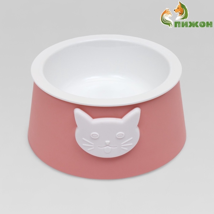 Миска для кошек 2 в 1 "Киса", пластиковая, 14 х 8 см, розовая