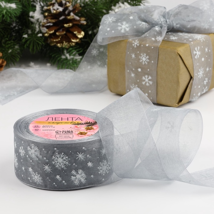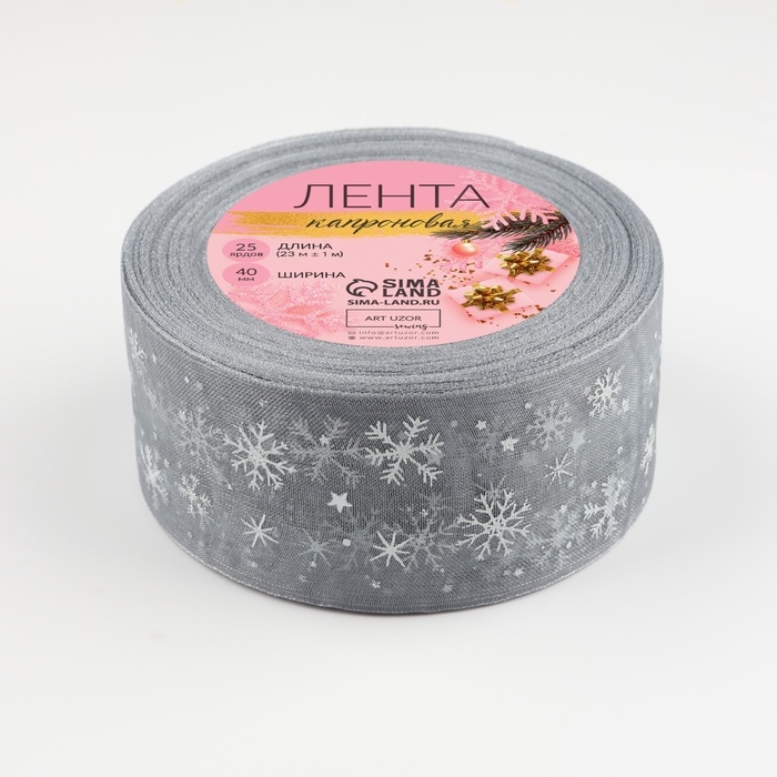 Лента капроновая «Снежинки», 40 мм × 23 ± 1 м, цвет серый/белый