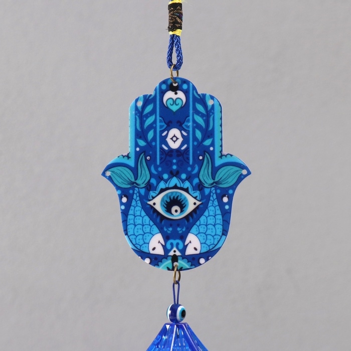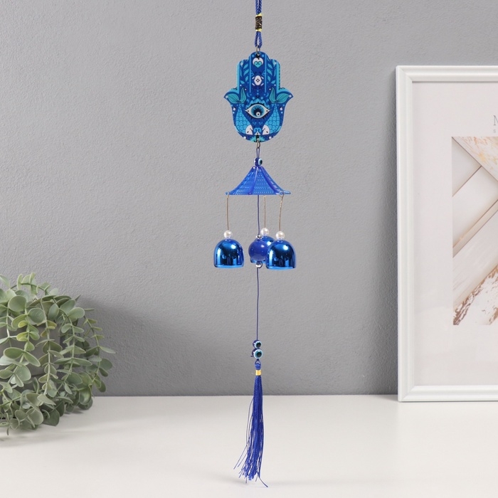Музыка ветра металл от сглаза "Рука Фатимы" 3 колокольчика 45 см