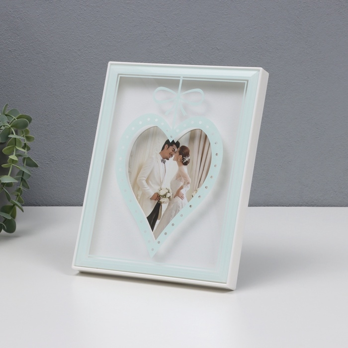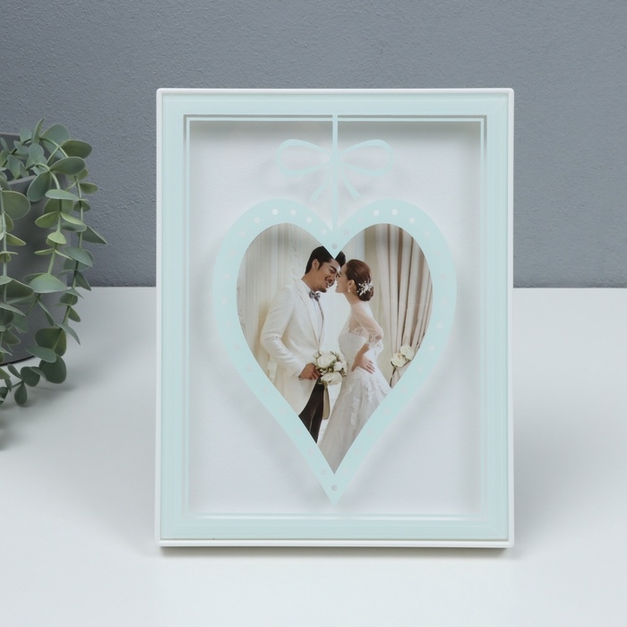 Фоторамка пластик на 1 фото13х18 см "Сердце с бантиком" белый бумага тиснение 18х2х23 см
