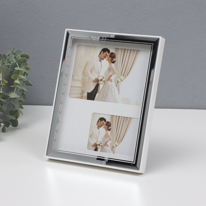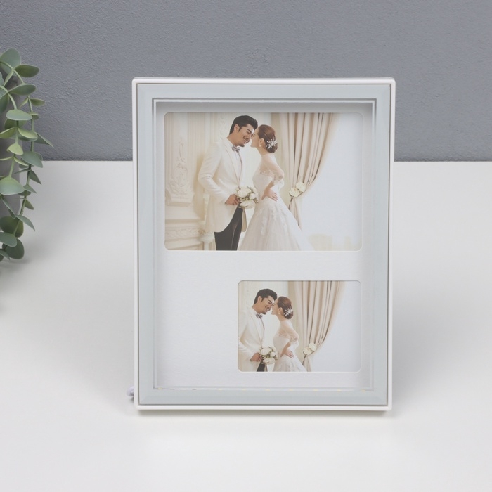 Фоторамка пластик на 2 фото 6х8,5 и 9х13 см "Яркие моменты" свет от USB, серебро 18х2х23 см 107050