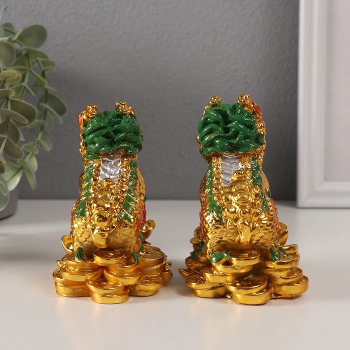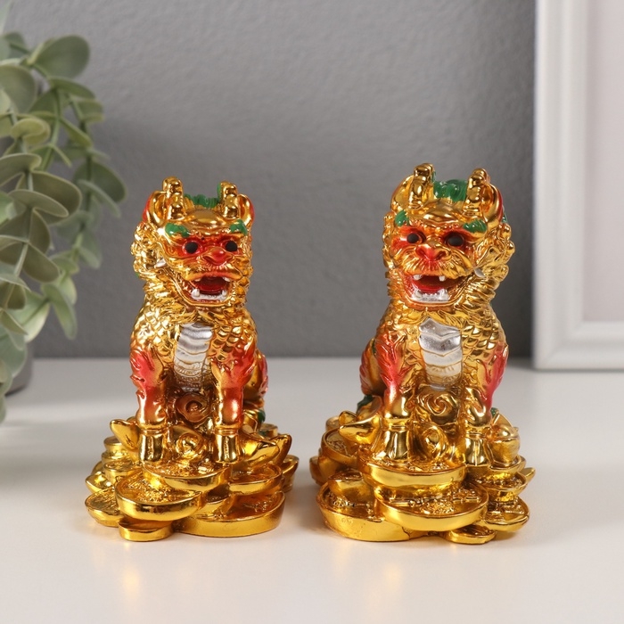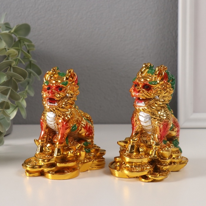 Нэцке полистоун "Кирины на монетах" золото набор 2 шт 6х9х10,5 см