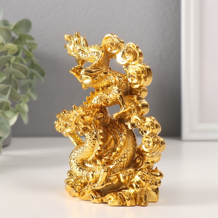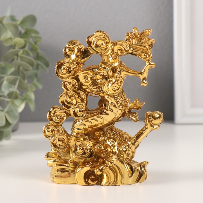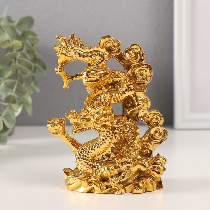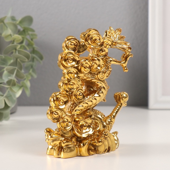 Нэцке полистоун "Дракон силы и мудрости" золото 4,5х8,5х12,2 см