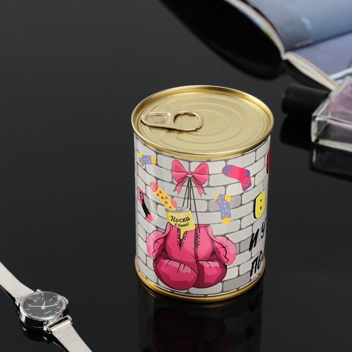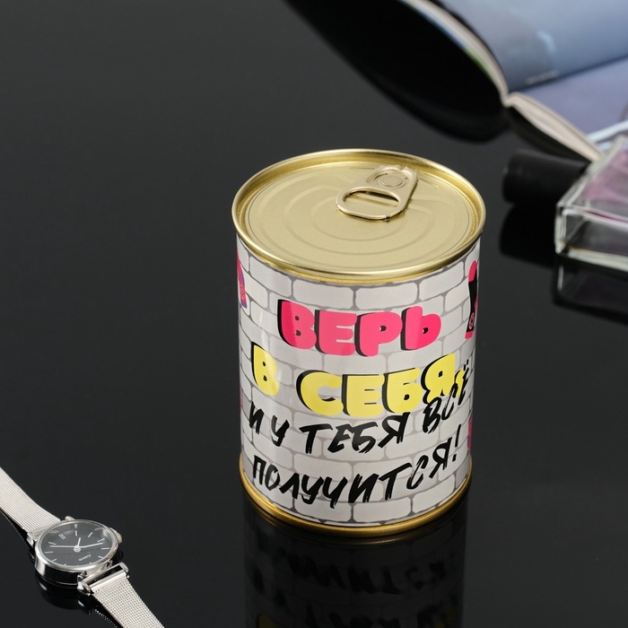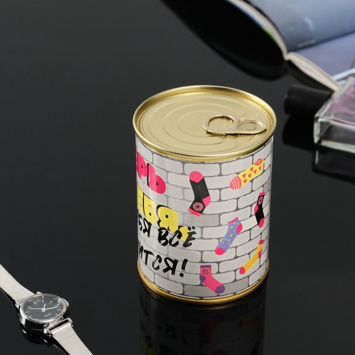 Носки в банке "Верь в себя, и у тебя все получится" (внутри носки женские, цвет белый)