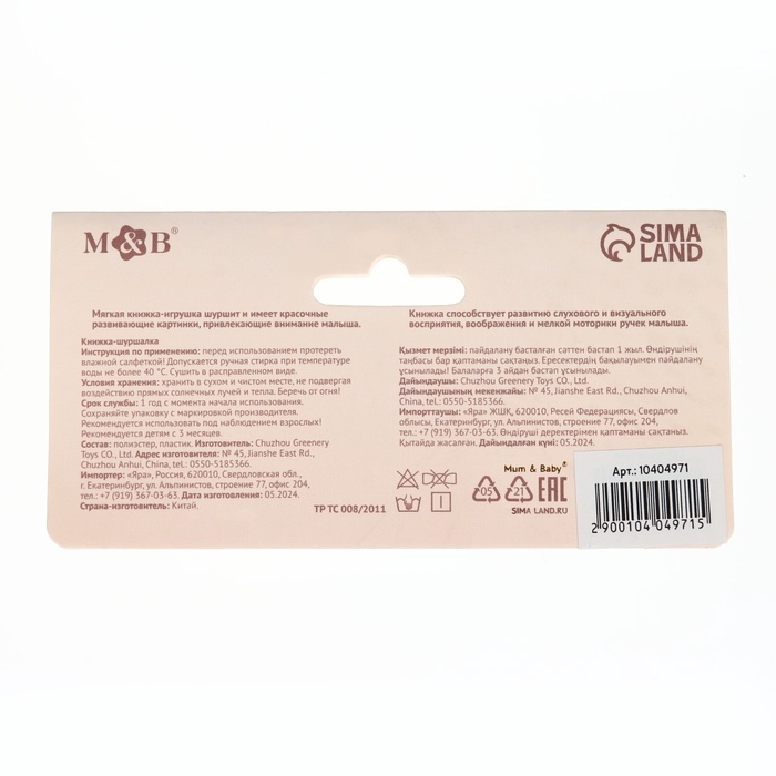 Занимательная мягкая книжка игрушка станет первой любимой мягкой книгой для малыша. Ваш малыш будет с удовольствием шуршать и изучать не только картинки, но и развивать свое воображение, визуальное восприятие, мелкую моторику рук и звуковое восприятие, ведь это еще и шуршащая игрушка, мягкая игрушка. В этом вам помогут милые и яркие герои, подвижные и шуршащие элементы.