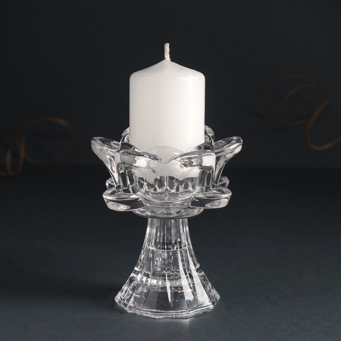 Подсвечник стекло на 1 свечу d=3 см "Бутон розы" прозрачный 8,2х8,2х9 см