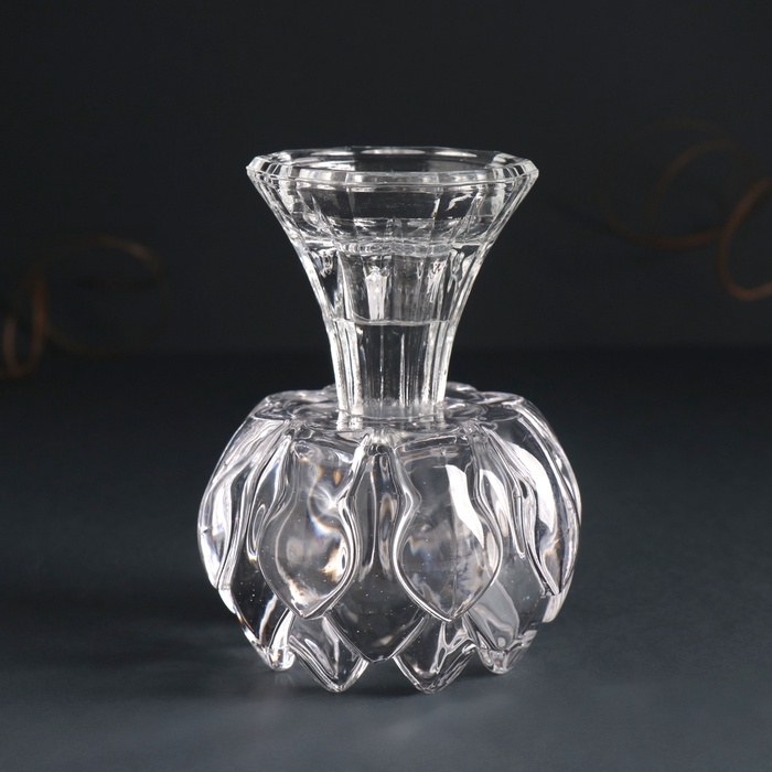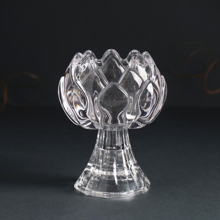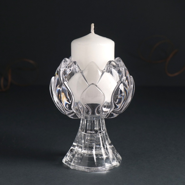 Подсвечник стекло на 1 свечу d=3,5 см "Водная лилия" прозрачный 8х8х11 см