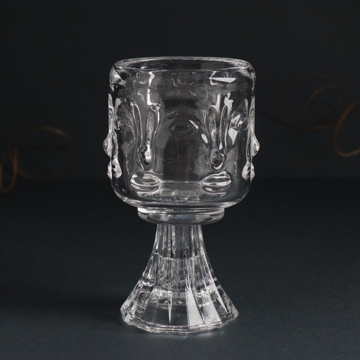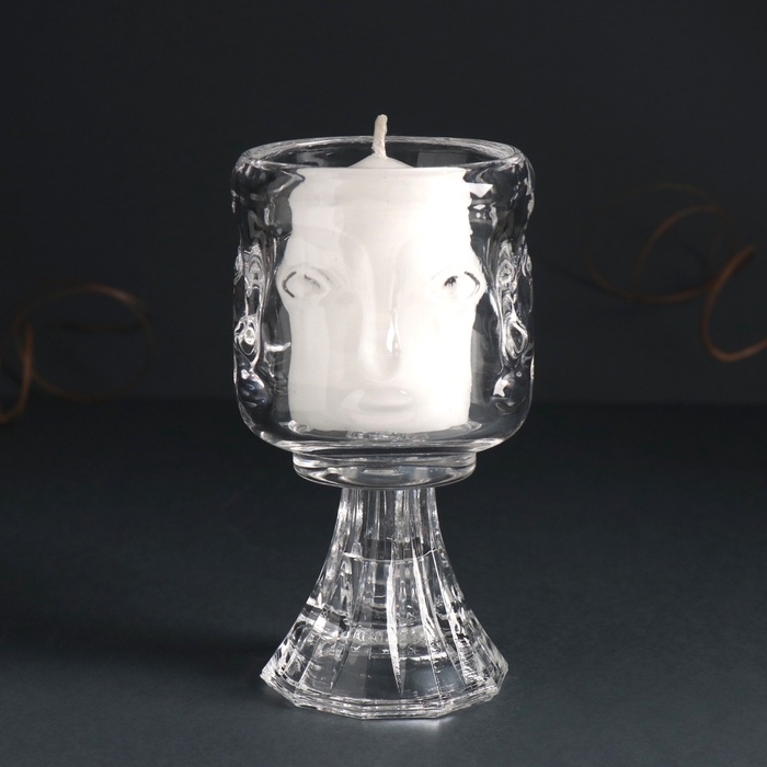 Подсвечник стекло на 1 свечу d=5 см "Лица" прозрачный 7х7х12,5 см